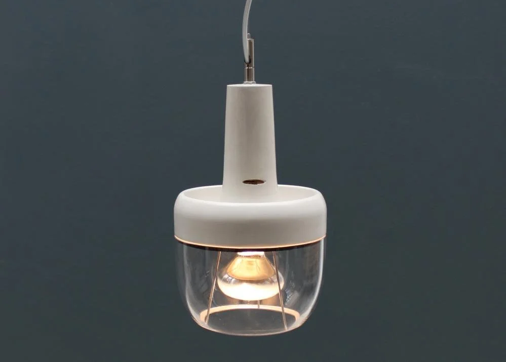 lampada con corpo in cemento e diffusore in vetro
