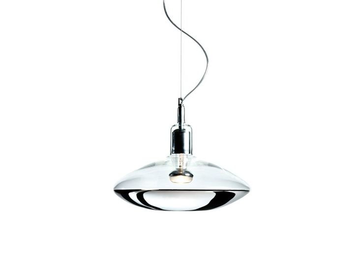 Lampada sospensione in vetro trasparente/schermata argento.