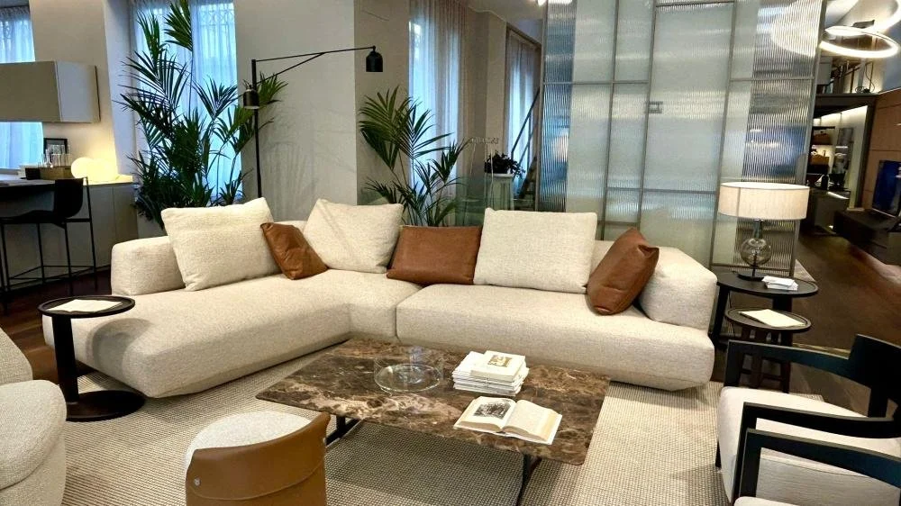“LOUNGESCAPE nasce da un costante lavoro sul tema della zona living commenta il designer Antonio Citterio La base rientrante, elemento distintivo del progetto, regala una sensazione di leggerezza pur mantenendo una forte presenza visiva.”