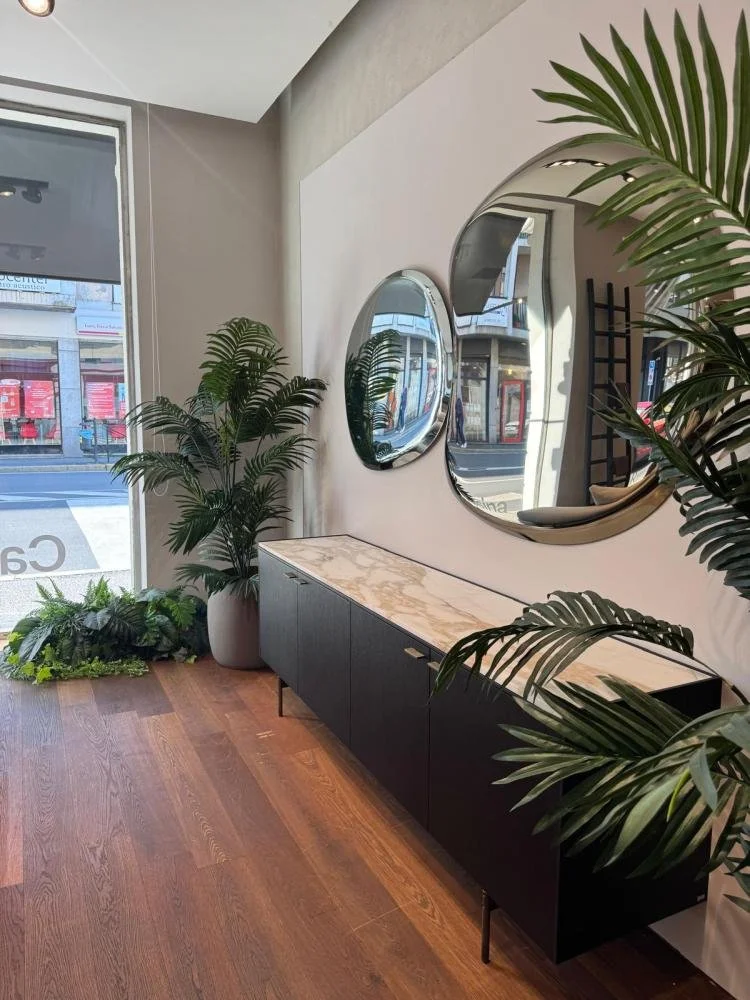 2 contenitori L 108 H 56 P48 con 2 ante battenti ciascuno e ripiano interno, top in marmo calacatta oro di Lema SpA